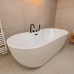 Fabel Apartments Am Zoo lägenhet omfattar 6 rum. Badrum har badkar och dusch.